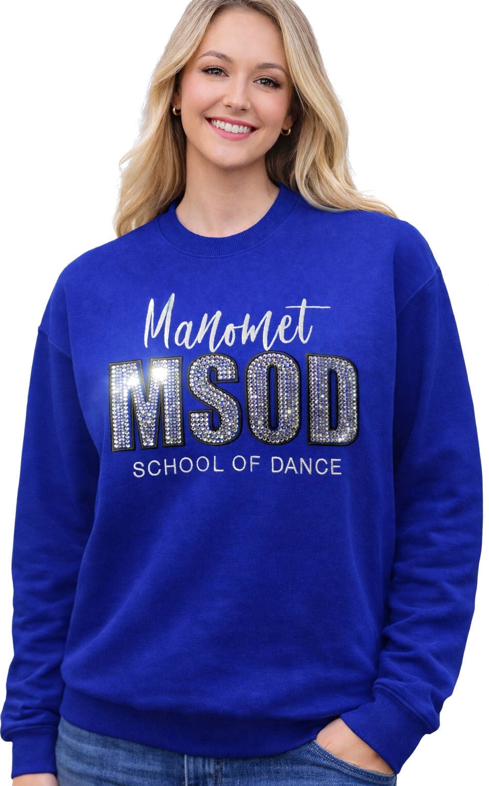 BLING-BROIDERY ROYAL BLUE FLEECE CREWNECK SWEATSHIRT
