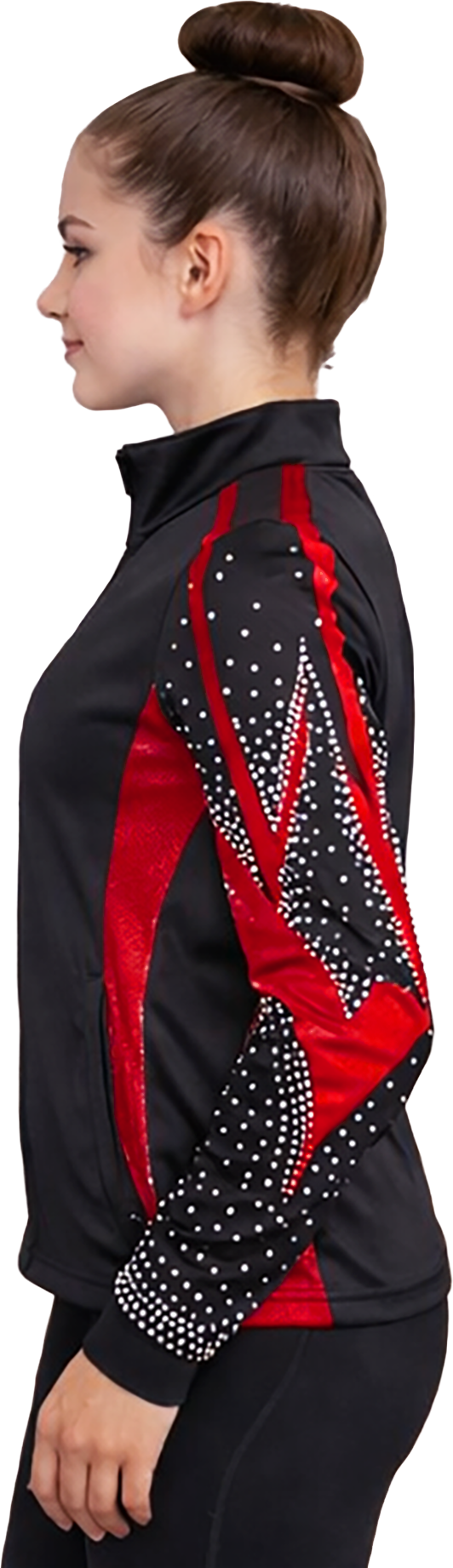 METALLIC MOTION RHINESTONE JACKET W/RHINESTONE ENCRUSTED SLEEVES