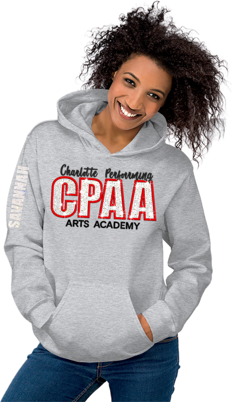 BLING-BROIDERY SPORT GREY FLEECE PULLOVER HOODIE