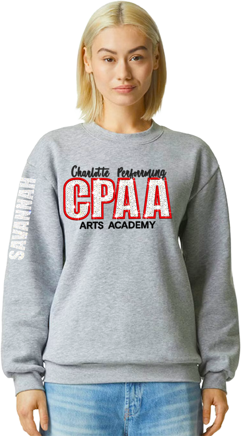 BLING-BROIDERY SPORT GREY FLEECE CREWNECK SWEATSHIRT
